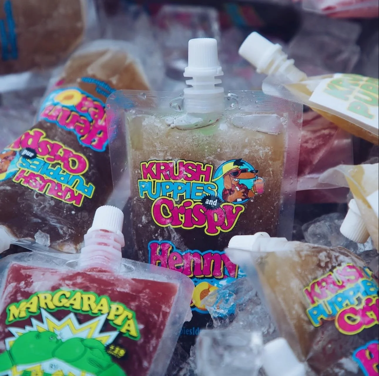 With Krush Puppies London we can create drinks with customed recipe & stickers sold in pouches.